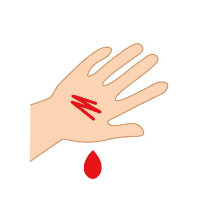●傷口から血液が、吹き出るような出血(動脈性出血)や大量に流れ出るような出血(静脈性出血)の場合は、早急な止血が必要。