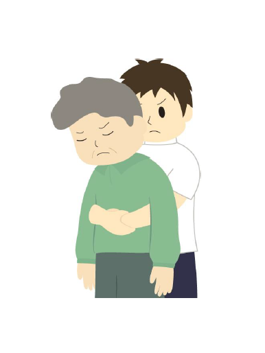 ●傷病者の後方から手のひらの付け根で、肩甲骨の間を力強く何度も連続して叩く。