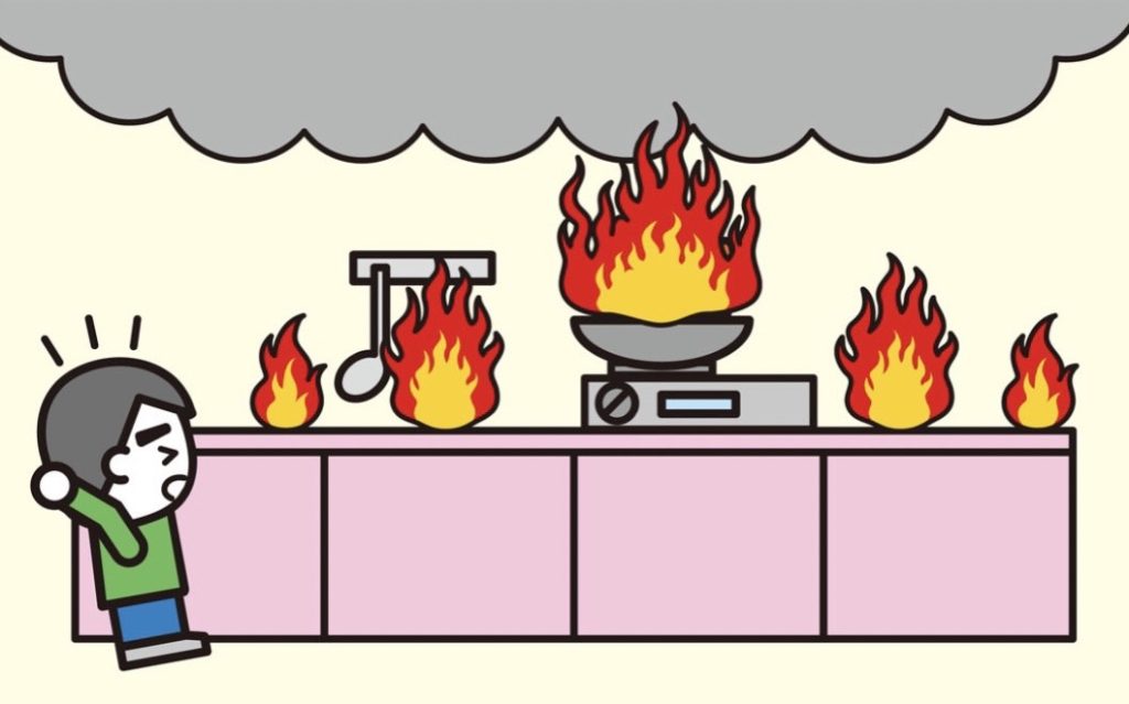 油を火にかけている際は最も危険です。油火災になる可能性があります。